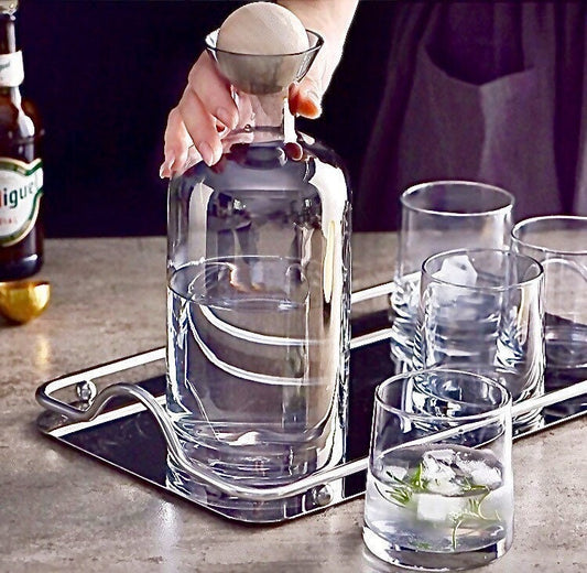 Clear Carafe and Glass Set, Whiskey Decanter, Whiskey Glasses, Bottleneck Pitcher, Carafe Tray, Wood Ball Stopper, Carafe & Glass Set, Gift Set