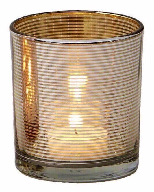 Gold Candle Holders, Glass Candle Holders, Votive Candle Holder Set, Tea Light Holder, Luminous, Set of 3, 3” D