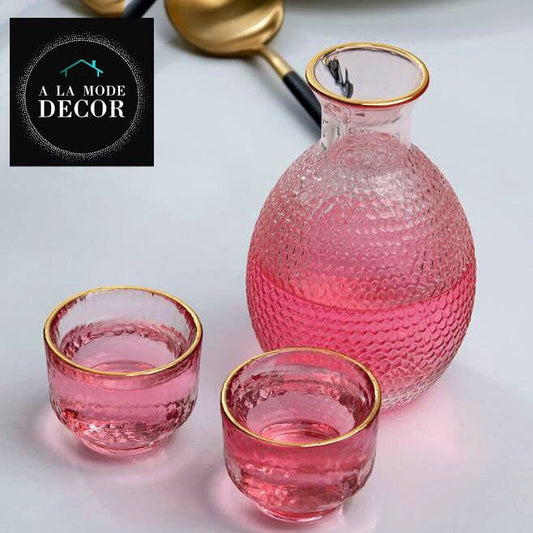 Japanese Sake Set | Wine Decanter | Carafe | Sake Decanter | Wine Decanter Set | Carafe Set | Barware | Champagne | Gold | Clear | Gold Rim