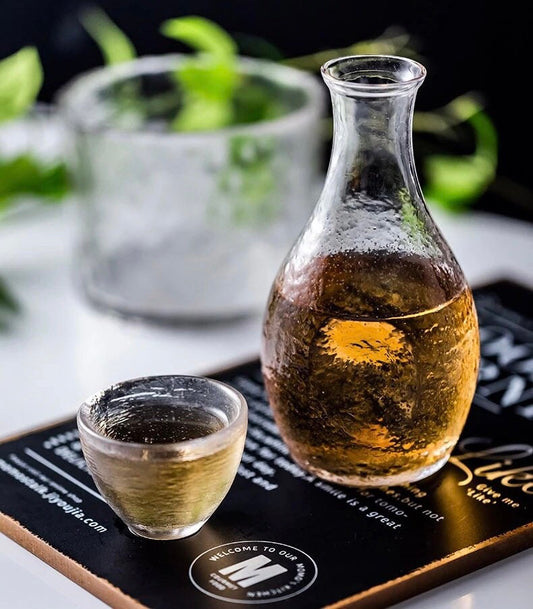 Japanese Carafe Set, Glass Decanter Set, Wine Decanter with Glasses, Gold Trim Cocktail Glasses, Carafe and Glass Set, Sake Set
