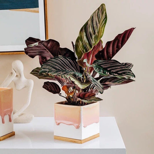 Planter Pot with Drainage, Plant Pot, Succulent Planter, Pink Planters, Wood Base, Planter with Tray, 4 inch, 5 inch, Gradient Ombré, White