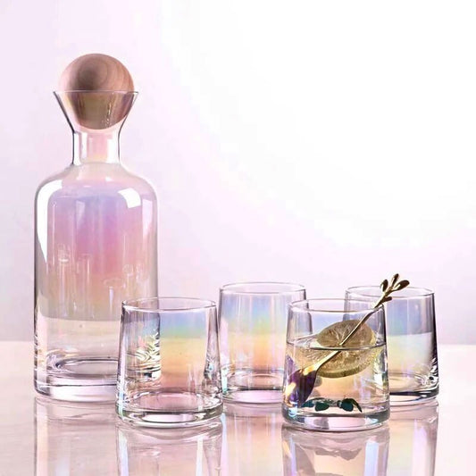 Rainbow Carafe Set, Whiskey Decanter, Whiskey Glasses, Bottleneck Pitcher, Carafe Tray, Wood Ball Stopper, Carafe & Glass Set, Gift Set