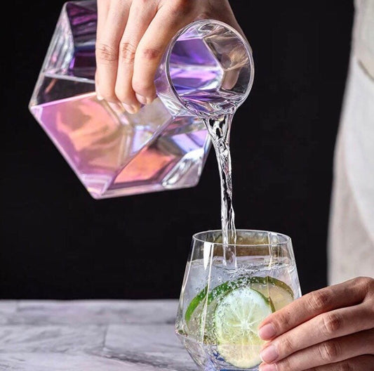 Rainbow Carafe, Carafe Set, Wine Decanter, Decanter Set, Geometric Juice Pitcher, Glasses, Tray, Wood Ball Cork Stopper, Carafe & Glass Set