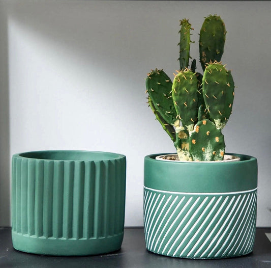 Rippled Plant Pot Set | 2-Piece Flower Pot Set | Planter Pots | Outdoor | Drainage | Sea Green | Coral Pink | Navy Blue | Cool Gray
