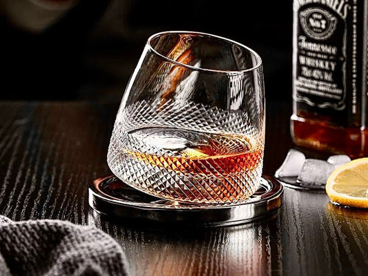 Rotating Whiskey Glass, Whiskey Glass Set with Coaster, Unique Scotch Glass, Minimalist Barware, Wedding Gift, Anniversary Gift, Father’s Day Gift