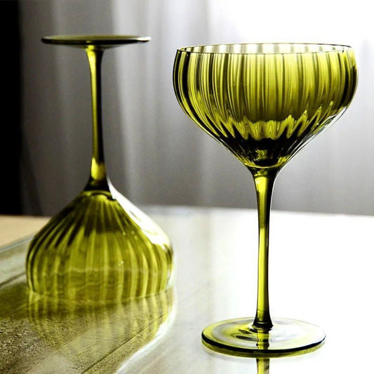 Rippled Coupe Glass, Olive Green Wine Glasses, Retro Style Barware, Vintage Style Wine Glass, Gifts For Her, Wedding, Anniversary