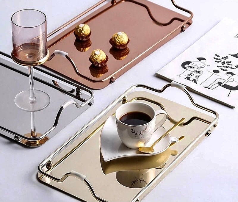 Decorative Tray, Decor Tray, Mirrored Vanity Tray, Drink Tray, Jewelry Tray, Barware Tray, Silver, Gold, Rose Gold